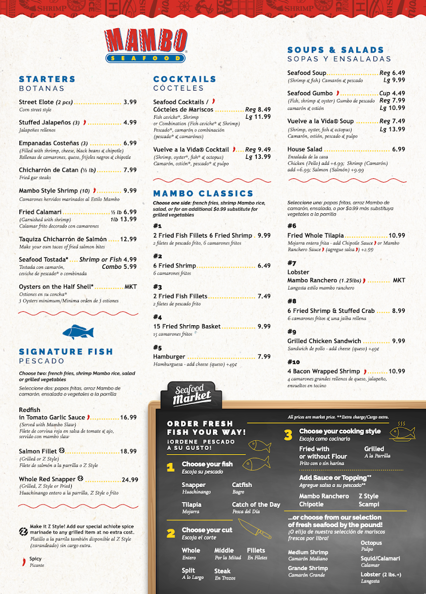 Welcome to Mambo Seafood, where the vibrant flavors of authentic Mexican seafood come alive right in the heart of Houston. Located at 12333 East Fwy, this culinary gem has quickly established itself as a must-visit destination for seafood enthusiasts. The menu offers a delightful array of options that cater to all palates, from succulent shrimp to mouth-watering fish dishes.
